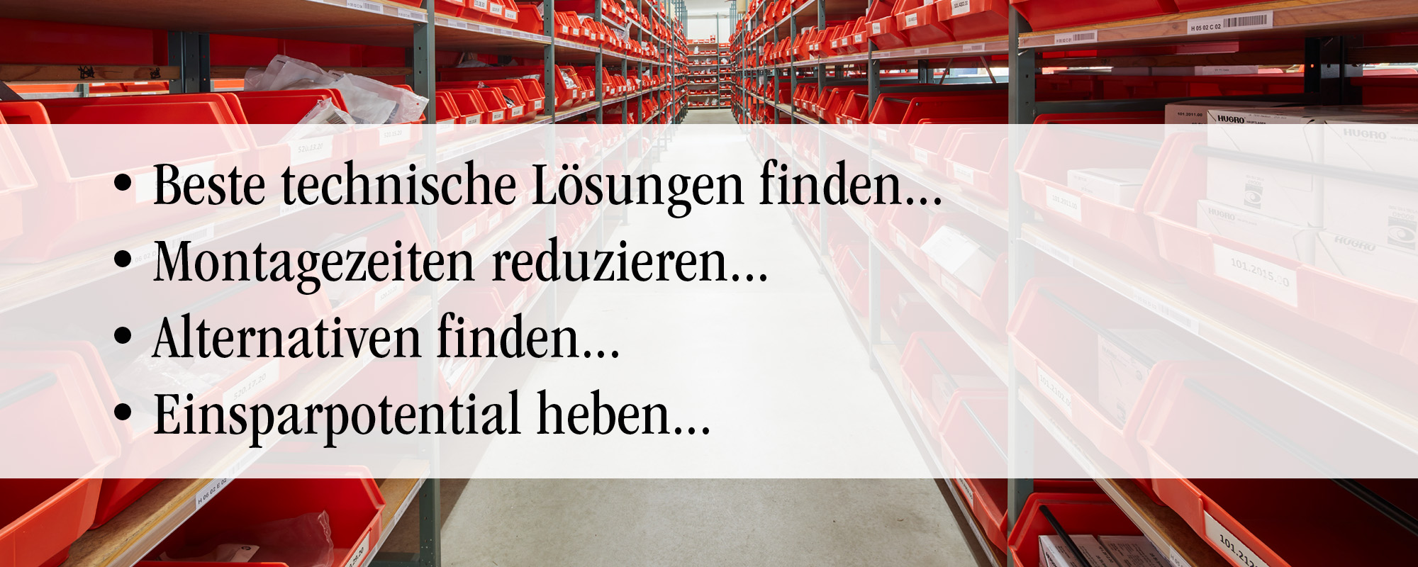 U.a. persönliche Beratung, individuelle Lösungen, optimale Verfügbarkeit, garantierte Preise